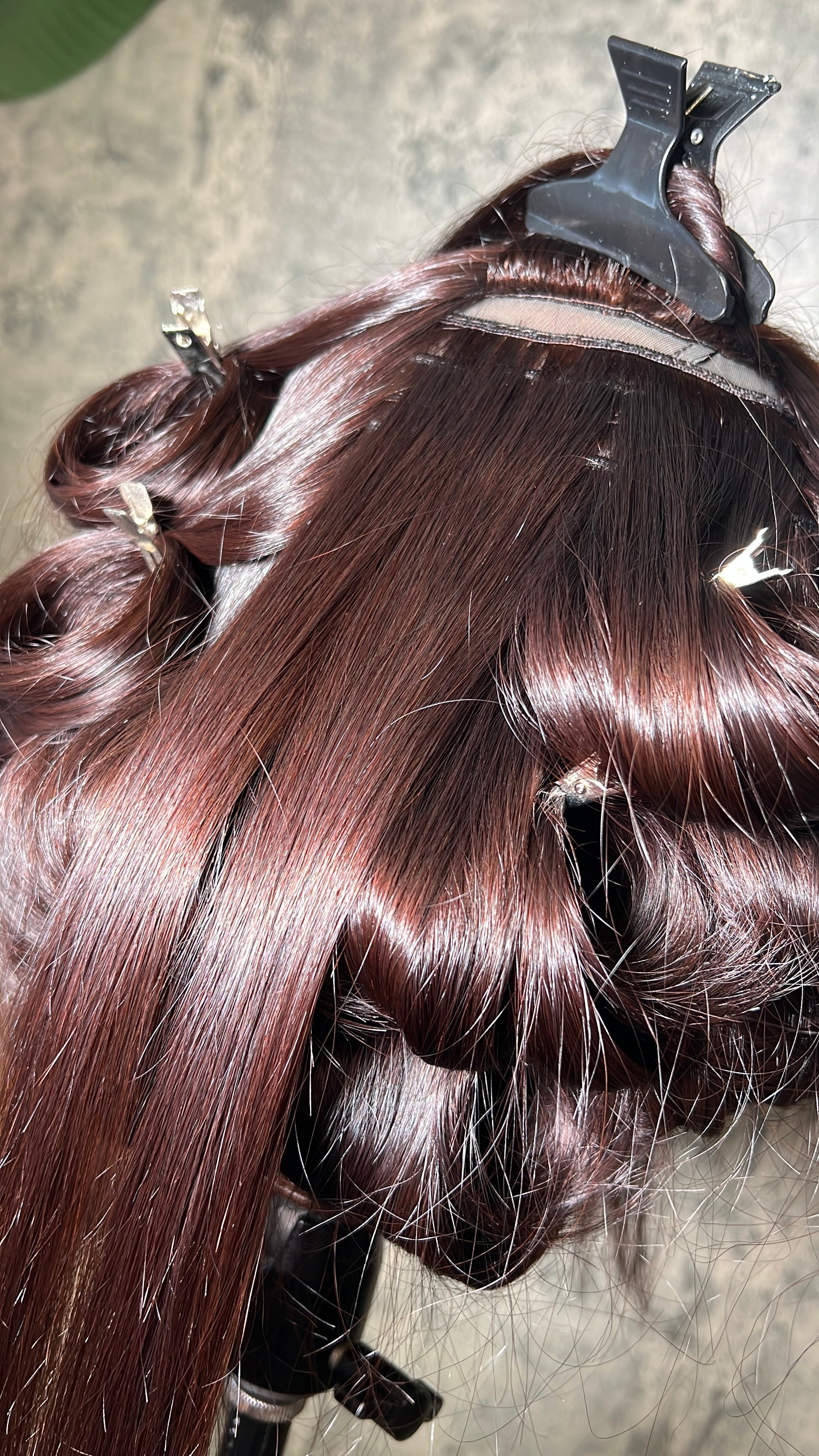 Mariah is our newest addition to the custom unit family. She is a beautiful vietnamese raw unit custom colored to a rich chocolate red brown , 4 bundles cut with long layers and paired with a 5x5 HD lace closure that is suitable for ANY season!
